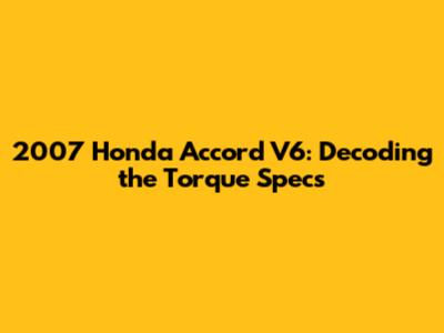 2007 Honda Accord V6: Torque Specs You Need