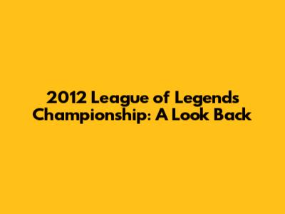Hey guys! Let's rewind the clock and dive into the 2012 League of Legends World Championship! This was a pivotal moment in the history of League of Legends, a time when the game was still relatively young, and the competitive scene was just starting to explode. The stakes were high, the plays were epic, and the champions were… well, champions! This tournament wasn't just about the glory; it helped shape the future of esports, showcasing the passion, skill, and sheer entertainment value that League of Legends offered. We're going to break down everything from the teams that made waves to the meta that defined the matches, and of course, who took home the coveted title. Let's see what made this championship so special and why it remains a topic of conversation among League of Legends enthusiasts. It's like, a trip down memory lane! Get ready to relive the excitement, the upsets, and the unforgettable moments that made the 2012 World Championship a true spectacle.
