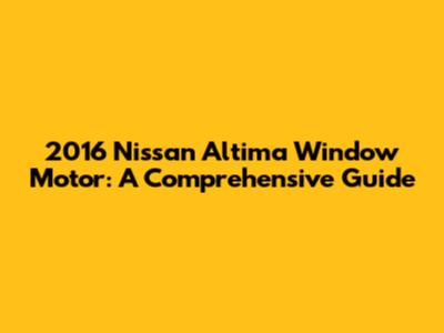 2016 Nissan Altima Window Motor: Troubleshooting & Replacement