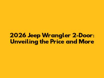 2026 Jeep Wrangler 2-Door: Price, Specs, And What To Expect