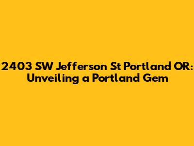 2403 SW Jefferson St, Portland, OR: Info & More
