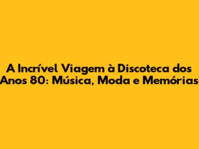 A Incrível Viagem À Discoteca Dos Anos 80: Música, Moda E Memórias