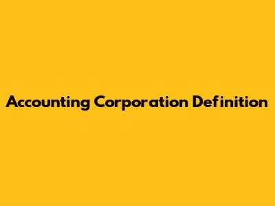Accounting Corporation: Definition & Key Features