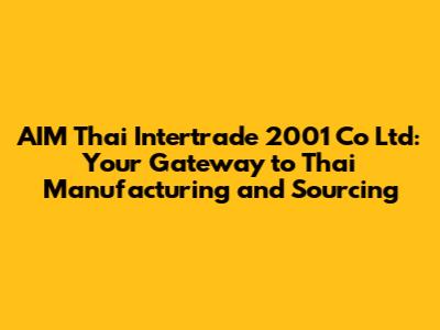 Are you looking for a reliable partner to navigate the complexities of manufacturing and sourcing in Thailand? Look no further than AIM Thai Intertrade 2001 Co Ltd. This company has established itself as a key player in the Thai trading landscape, offering a comprehensive suite of services to help businesses like yours thrive. In this article, we'll dive deep into what makes AIM Thai Intertrade 2001 Co Ltd a valuable asset for your international trade endeavors. Whether you're a seasoned importer or just starting to explore the potential of Thai manufacturing, understanding their capabilities can significantly benefit your business strategy. We'll explore their history, core services, and the specific advantages they bring to the table, giving you a clear picture of how they can facilitate your success in the Thai market. So, let's get started and unlock the potential of partnering with AIM Thai Intertrade 2001 Co Ltd!