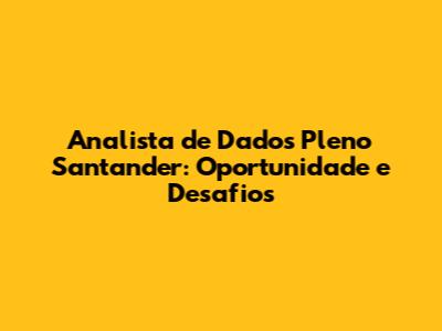 Se você está de olho em uma carreira promissora na área de dados e tem interesse em trabalhar em uma instituição financeira renomada, a vaga de Analista de Dados Pleno no Santander pode ser uma excelente oportunidade. Neste artigo, vamos explorar os detalhes dessa posição, desde as responsabilidades e requisitos até as habilidades necessárias e os benefícios de fazer parte do time Santander. Prepare-se para uma imersão no mundo da análise de dados e descubra como você pode alavancar sua carreira! Afinal, quem não quer trabalhar em um lugar bacana e ainda ter a chance de crescer profissionalmente, né?