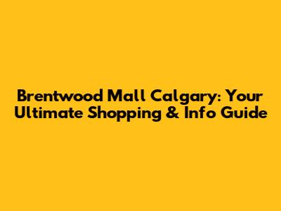 Brentwood Mall Calgary: Your Shopping & Info Guide