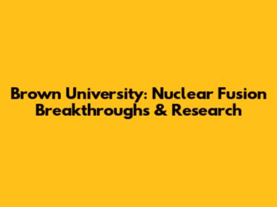 Brown University: Nuclear Fusion Breakthroughs & Research