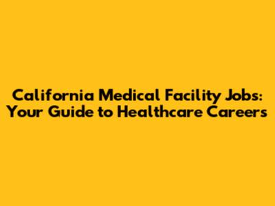 California Medical Facility Jobs: Your Guide To Healthcare Careers