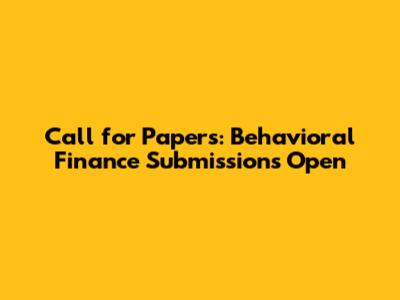 Call For Papers: Behavioral Finance Submissions Open