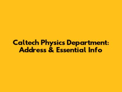 Caltech Physics Department: Address & Essential Info
