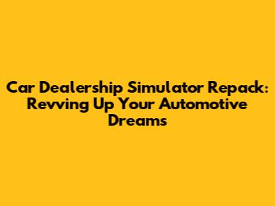 Car Dealership Simulator Repack: Your Guide To Automotive Empire