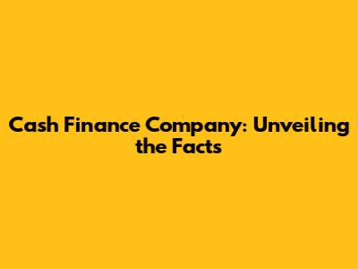 Cash Finance Company: Unveiling The Facts