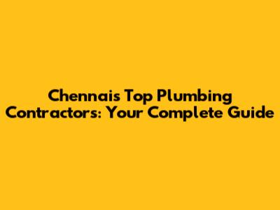 Chennai's Top Plumbing Contractors: Your Complete Guide