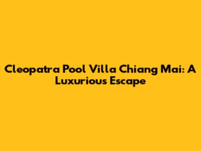 Cleopatra Pool Villa Chiang Mai: A Luxurious Escape