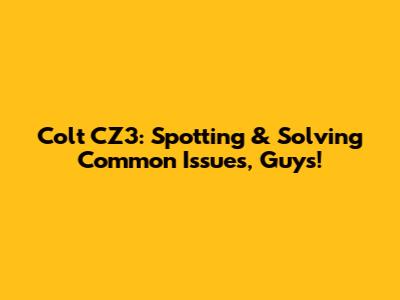 Colt CZ3: Spotting & Solving Common Issues, Guys!