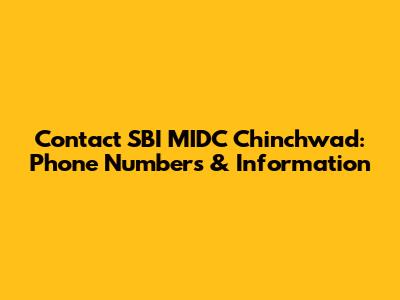 Contact SBI MIDC Chinchwad: Phone Numbers & Information