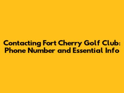Fort Cherry Golf Club Phone Number: Your Direct Line