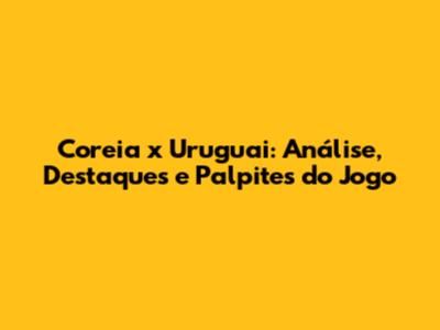 Coreia X Uruguai: Análise, Destaques E Palpites Do Jogo