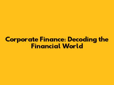 Corporate Finance: Decoding The Financial World