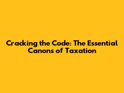 Cracking The Code: The Essential Canons Of Taxation