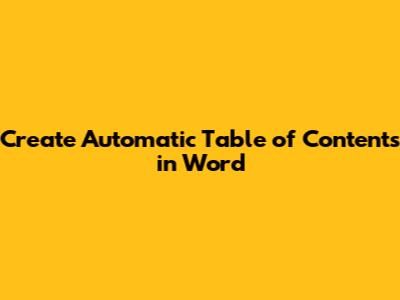 Create Automatic Table Of Contents In Word