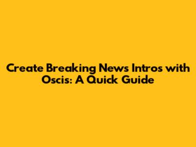 Create Breaking News Intros With Oscis: A Quick Guide