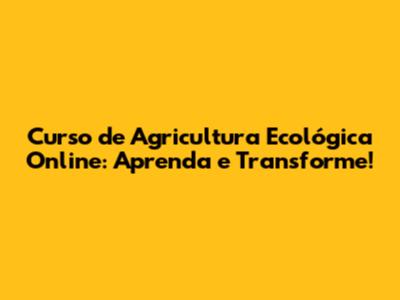 Curso Agricultura Ecológica Online: Aprenda E Transforme!