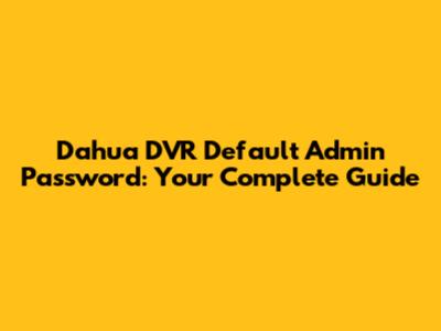 Dahua DVR Default Admin Password: Your Complete Guide