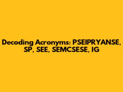 Decoding Acronyms: PSEIPRYANSE, SP, SEE, SEMCSESE, IG