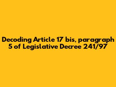 Hey everyone! Today, we're diving deep into a topic that might sound a bit dry at first, but trust me, it's super important for understanding certain financial and tax procedures in Italy. We're talking about Article 17 bis, comma 5 of Legislative Decree 241/97. Now, I know "Legislative Decree" doesn't exactly scream "fun," but this specific article deals with some really practical stuff, especially when it comes to tax withholdings and payments. So, grab your coffee, settle in, and let's break down what this legal jargon actually means for us.