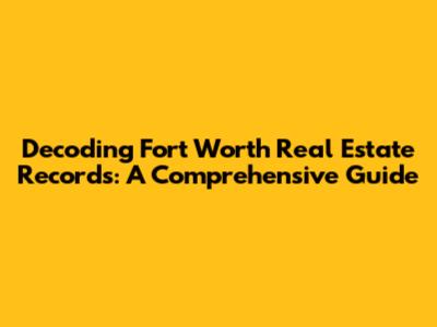 Decoding Fort Worth Real Estate Records: A Comprehensive Guide