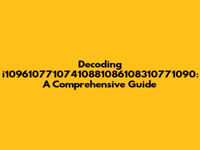Decoding I10961077107410881086108310771090: A Comprehensive Guide