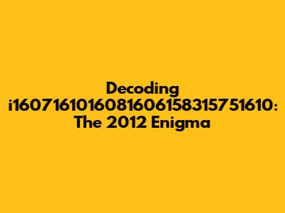 Let's dive into the mystery of i1607161016081606158315751610 2012. What could this possibly mean? Well, at first glance, it looks like a jumble of numbers and a year. But don't worry, guys, we're going to break it down and see if we can make any sense of it. Maybe it's a secret code, a serial number, or just a random string of digits. Whatever it is, let's put on our detective hats and get to work!