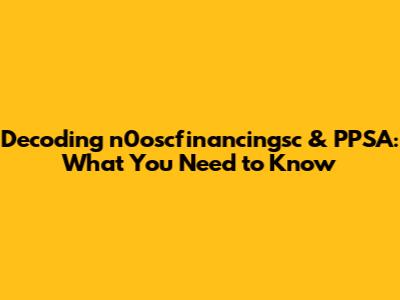 Decoding N0oscfinancingsc & PPSA: What You Need To Know