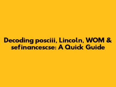 Decoding Posciii, Lincoln, WOM & Sefinancescse: A Quick Guide