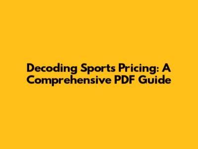 Decoding Sports Pricing: A Comprehensive PDF Guide