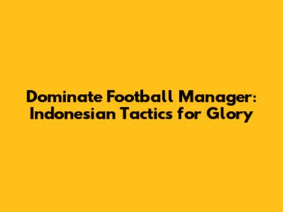 Dominate Football Manager: Indonesian Tactics For Glory