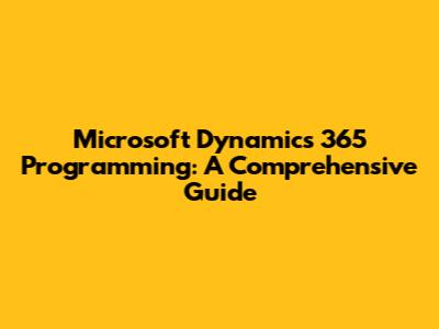 Dynamics 365 Programming: A Comprehensive Guide
