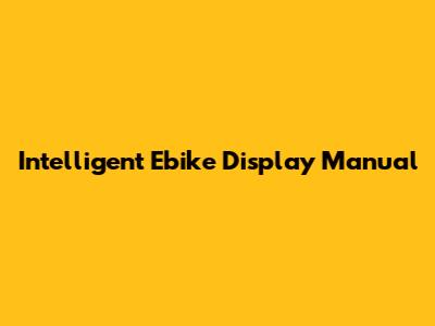 Ebike Display Manual: Your Guide To An Intelligent Ride