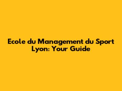 Ecole Du Management Du Sport Lyon: Your Guide