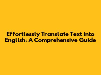 Effortlessly Translate Text Into English: A Comprehensive Guide