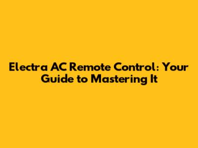 Electra AC Remote Control: Your Guide To Mastering It