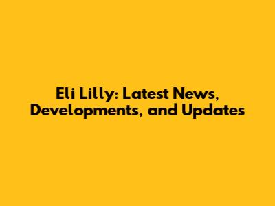 Eli Lilly: Latest News, Developments, And Updates
