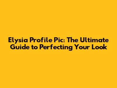 Elysia Profile Pic: The Ultimate Guide To Perfecting Your Look