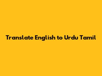 English To Urdu & Tamil Translation: Quick & Accurate!