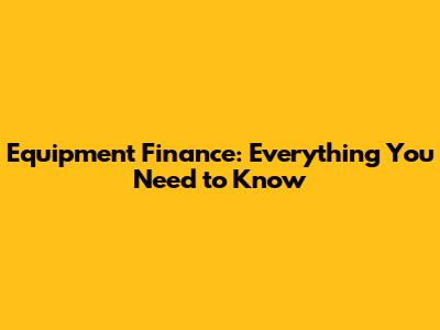 What is Equipment Finance?