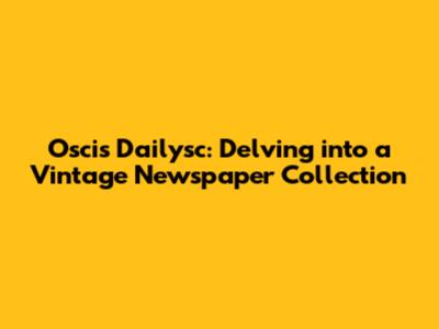 Now, let's dig into what specifically makes the Oscis Dailysc stand out from other vintage newspapers. Is it the era it covers? The unique perspective it offers? Or perhaps the way it reported on local events? Whatever it is, there's likely a compelling reason why this particular collection has captured our attention.