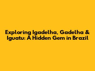 Hey guys! Ever heard of Igadelha, Gadelha, and Iguatu? These aren't your everyday tourist hotspots, but trust me, they're totally worth checking out if you're looking for an authentic Brazilian experience. Nestled in the state of Ceará, Brazil, these places offer a unique blend of culture, history, and natural beauty that you won't find anywhere else. Let’s dive into what makes each of these spots so special, giving you the lowdown on why they should be on your travel radar.