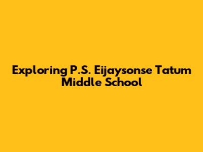 Hey everyone, let's dive into the world of P.S. Eijaysonse Tatum Middle School! This place is a hub for learning, growth, and community, and we're going to explore what makes it tick. Whether you're a current student, a prospective parent, or just curious, this article will give you the inside scoop. Get ready to learn about the academics, extracurriculars, and the overall vibe of this awesome middle school.