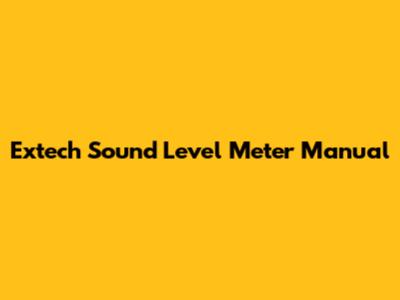 Extech Sound Level Meter: User Manual Guide